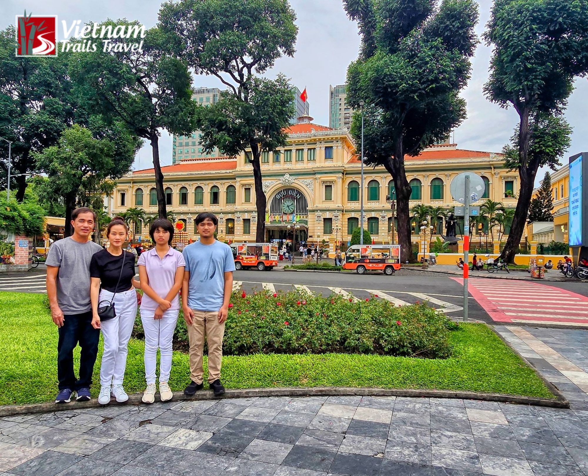 11:45 AM – We take a breezy walk through the French Quarter. You’ll see the Saigon Central Post Office (it’s even more beautiful inside) and the Notre Dame Cathedral. In 2026, the cathedral is still being restored, but you can see the stunning new craftsmanship on the spires that was recently completed.